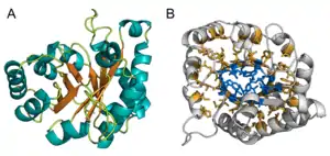 - 1 2 Reardon, D; Farber, GK (1995). "The structure and evolution of alpha/beta barrel proteins". The FASEB Journal 9 (7): 497-503. doi:10.1096/fasebj.9.7.7737457.