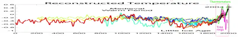 ![]() Derivative of c:File:2000 Year Temperature Comparison.png and c:File:Briffa-tree ring density vs temperature 1880-2000.jpg showing how the two graphs can be combined. This is less a scientific effort than an educational one: primitive and easy to understand. ![]() Derivative of c:File:2000 Year Temperature Comparison.png and c:File:Briffa-tree ring density vs temperature 1880-2000.jpg showing how the two graphs can be combined. This is less a scientific effort than an educational one: primitive and easy to understand. |