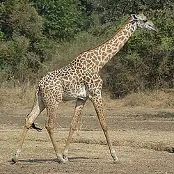 Giraffa camelopardalis are the tallest mammals on earth. Males reach a height of up to 5.2 metres and females 4.7 metres. Giraffes have a maximum mass of 1400 kg. In addition to the common giraffe, a subspecies known as Thornicraft's giraffe, with white legs and faces, inhabits Zambia's South Luangwa National Park.