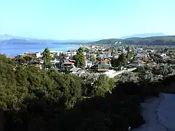 At about 7 km, it has one of the longest beaches in Europe. It lies 12 km northeast of Limni and 47 km north of Chalkida. During winter, there are about 1000 inhabitants, with the number increasing highly during summer to around 7000 people. The commune is also famous for some of the best camping in Greece. In the area have been built a large number of country houses and many apartments and hotels.