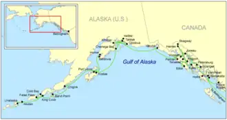 The largest ports in the Prince William Sound; Whittier, Valdez and Cordova are connected to each other on a near-daily basis around the year. However the only connection to the southeast from there is the aforementioned MV Kennicott.