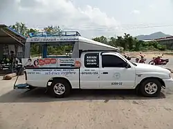 There is a songthaew (shared pick-up truck/taxi) service to Ao Nang from the Krabi Bus Station and Krabi town, which runs during daylight hours in low season and up to 22:00 in high season. The fare from Krabi to Ao Nang is 60 baht. Songthaews can be expected every 15–20minutes. Songthaews are colour coded according to destination. From Krabi Bus Station and Krabi town, get on a white songthaew. To find one of these white ones in Krabi, go to the 7-Eleven at the corner of Soi 8 and Maharaj Rd (the main road). Songthaews from bus station en route to Ao Nang stop there for 10 minutes.