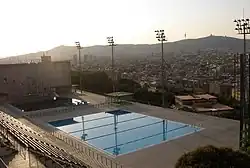 • 🌍 Piscina Municipal de Montjuïc (Swimming pool on Montjuic), Av Miramar 31, +34 934430046. M-F 11:00-18:30. In the summer months July and August the outdoor swimming pool is open for public. This pool offers spectacular views over the whole city. The pool is close to the exit from the funicular that departs from metro station Parallel; metro ticket is valid for the funicular. €5.05 for adults.