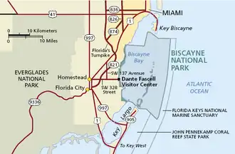 - Dante Fascell Visitor Center, +1 305-230-1100. 9AM-5PM. A gift shop sells T-shirts and other souvenirs. A bookstore, operated by the South Florida National Parks Association, sells various educational items. Proceeds support educational and scientific endeavors in South Florida's four national park areas.