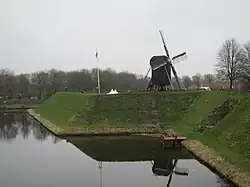 The original Bourtange 🌍 Standard Mill was on the Mill's bastion but was moved to the hamlet Ter Haar after the military left the fort. Today, the original still stands in Ter Haar, where it is the only remaining mill of this kind in the Northern Netherlands. A nice replica has been built in Bourtange and once again stands on the reconstructed bastion.