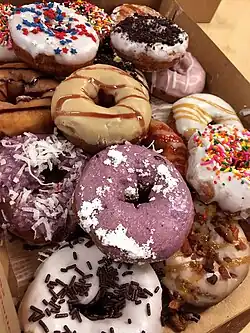 Another category of baked items are brownies, blondies (butterscotch brownies that may or may not also have chocolate chips in them) and various kinds of squares (lemon, lime, chocolate-pecan – the potential varieties are endless). The chocolate chip cookie is a national favorite, and bakeries typically offer frosted sugar cookies year-round and cinnamon-y gingerbread cookies during the winter holidays. Doughnuts come in two main types – the raised doughnut and the cake doughnut. On average, you will find better quality doughnuts at a doughnut shop than at a grocery store, although the doughnut shop will close earlier in the day. A variant of the doughnut called a beignet is a speciality of New Orleans. Unlike regular doughnuts, it is not round with a hole in the middle, but instead is rectangle and dusted with icing sugar. The cronut, which makes use of croissant dough instead of regular doughnut dough, is a speciality of New York City.