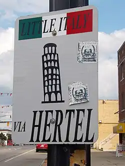Perhaps the greatest change to take place in North Buffalo at this time, however, was in its ethnic makeup. In the early and mid-1960s, as the Lower West Side fell to the wrecking ball as part of a misguided campaign of "slum clearance", many of the Italian-Americans who'd been evicted from those blocks began to drift into the vicinity of Hertel Avenue, displacing the Jewish community in that area which dispersed over the ensuing decades, largely into suburban Amherst. Even the Italian Village Festival, heretofore held on Connecticut Street in the West Side, picked up stakes and moved north in 1988, where it went on to become one of the biggest Italian-American street festivals in the nation. But by 2011, when the city government finally got around to officializing this change by festooning the streetlamps along Hertel with handsome red-white-and-green signs reading "Welcome to Little Italy", it was almost too late: the next phase of its demographic evolution was already in progress. The whole city was on an upswing at this time, and in its toniest neighborhood, the Elmwood Village, gentrification had proceeded to such a degree that small businesses could no longer afford the astronomical rents their landlords were charging. Many Elmwood shopkeepers and restaurateurs chose to move elsewhere in the city, and the already thriving but significantly less expensive Hertel strip was a prime destination for those displaced businesses. The result has been not only that Hertel has overtaken Elmwood as Buffalo's liveliest shopping, eating, and nightlife street, but also that Little Italy is getting progressively less and less Italian: the older pizzerias, bakeries, and wine bars are nowadays joined by a diversity of new shops and businesses catering to every taste.