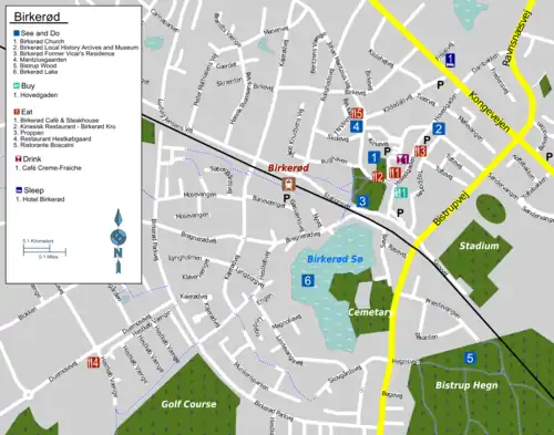 • 🌍 Sjæl Lake (Sjælsø), Birkerød (best accessed from The Hunter's Shed (Jægerhytten) at the north end of Bakkevej). Marked routes through woods and along the lake. It should be possible to catch fish here. It is also possible to take a swim a bit further east. Restaurant, café and toilets available.