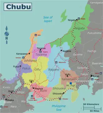 The Chūbu region covers a large and geographically diverse area of Honshū, which leads to it generally being divided into three distinct subregions: Tōkai, Kōshin'etsu, and Hokuriku.