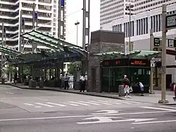 Government Square is the main bus hub for Metro and is on Walnut Street. Occasionally, when large events are going on downtown, bus routes will be re-routed to avoid Government Square. The square received its name due to the government buildings that border the square, such as the Federal Office Building, a Federal Courthouse, and a Federal Reserve Bank branch. Within the complex is an information kiosk providing details of bus routes and a free Wi-Fi service.