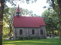 • 🌍 Assumption Chapel (Grasshopper Chapel). Assumption Chapel, also known as the Grasshopper Chapel, was built in petition for relief from the Grasshopper Plagues of the 1870s. The Chapel is situated on the top of a hill on the outskirts of Cold Spring, Minnesota. Pilgrimage Road winds up the steep hill first lined with huge lilac bushes and then shrouded by enormous trees. The top of the hill is covered with lush grass and more trees. In the midst of a clearing in the trees stands the granite form of the Chapel. In 1952, in honor of the centennial of the diocese of Saint Cloud, the Chapel was rebuilt. The current chapel stands sixteen by twenty-six, the approximate size of the original chapel. It is constructed of rough granite, much of which was donated by the Cold Spring Granite Company, a major local business. The inside of the Chapel is simple and has no pews, only an altar. The chapel walls are made of polished agate and carnelian granite. Four simple stained glass windows enhance the interior of the chapel. Above the altar stands the wooden statue that had been carried in procession through the Cold Spring community at the time of the Chapel's original consecration. The most telling feature and testimony to the history of the chapel is the stone carving above the door. It is inscribed "Assumpta est Maria" ("Mary has been taken up"), referring to the new name given to this reconstructed chapel. Mary is pictured between the words but at her feet, bowing in submission, are two kneeling grasshoppers.