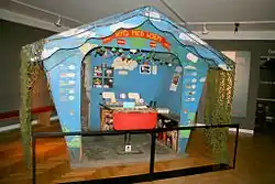 The most famous tourist draw to Christiania is no longer there, but rather on the National Museum in downtown. The old colourful hash-stalls which used to line Pusher street, was demolished in 2004, in an attempt to gain permanent rights to occupy the area from the right wing government. One of them, the signature blue "Ryg med hjem (Smoke-away)" booth, was salvaged, and is now on display in the modern collection of the National Museum, complete with furnace, sales tables and instruments to sell marijuana, but without the authentic goods.