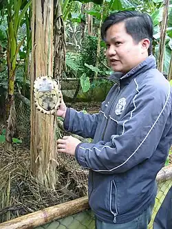 Manager of Cuc Phuong Turtle Conservation Center holding Specimen