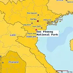 Cuc Phuong is in the foothills of the northern Annamite Mountains. The park consists of verdant karst mountains and lush valleys. Elevation varies from 150-656 m at the summit of May Bac Mountain, or Silver Cloud Mountain. The limestone formations produced numerous caves, many of which are accessible for exploration.