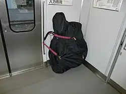 Transporting bikes long distances in Japan can be pain. Usually trains only allow bikes in a "rinko bag" (bike bag, 輪行袋 rinkō-bukuro or 輪行バッグ rinkō baggu). This requires a folding bicycle or removing one or both wheels, so it's not very convenient for short trips. Rinko bags can be purchased at any bike shop, and ultralight ones that pack small (but provide very little protection) are also available.