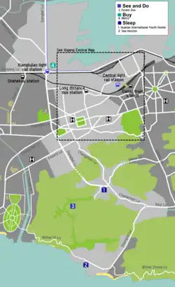Getting around in the central part of the district is little trouble given that most of the areas of interest are clustered around People's Square and the Stadium which are no more than 10 minutes walk from one another. To get to the central market catch bus 16 or 22 from the stadium or People's Square to Qingniwaqiao, head to the railway station and walk through the pedestrian tunnel on the left hand side. The Forest Zoo can be reached by catching bus 4 (terminating at Tiger Beach) from the stadium. To get to Fujiazhuang Beach head to Qingniwaqiao then take bus 5.