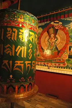 - 🌍 Tsuglagkhang Complex, Temple Rd, McLeod Ganj. This is the largest Tibetan temple outside Tibet, and it has a large meditation hall containing some beautiful statues and thangkas, as well as a Kalachakra temple with beautiful murals. It is the monastery of the Dalai Lama, and is just in front of his residence. It also contains the largest Tibetan prayer wheel of about 2 m height—spin it!