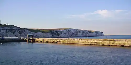 Dover is a major port town in East Kent, facing into the English Channel. At just 21 mi (34 km) from the French port of Calais, it is the closest port to continental Europe on mainland Britain. It is most famous for its Castle, and for its white chalk cliffs which have been celebrated in song.