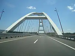 Dunaújváros is on the M6 ​​(Budapest-Pécs) motorway, which has three exits in the city. South of the city it intersects with the M8 motorway, which here only consists of the Pentele híd, which connects the M6 ​​with the other bank of the Danube at Dunavecse . Both the M6 ​​and the Danube bridge of the M8 require a vignette. Coming from Székesfehérvár you do not drive on the motorway, but directly on trunk road 62.