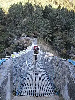 Neither a guide nor a porter is required for the journey, although hiring one does provide welcome income for poor families and may give more flexibility. If you do hire a porter, keep your valuables with you. The vast majority of porters are honest, but it only takes one who is not to ruin a holiday. Expect to pay around Rs. 2,500โ4,500 a day (more if your load is very heavy) for a porter's services, and as far as Namche Bazaar you are not expected to pay for their accommodation and meals. However, due to the high price of food and lack of provisions for porters above Namche, meals should be provided. (Namche has a cheap and clean lodge specially for porters). Anyway, ensure that your terms are clear at the time of hiring to avoid trouble later.