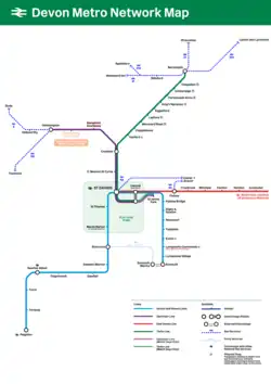 - π Exeter St James's Park. Also on the Riveria Line from Exeter to Torquay via Marsh Barton.