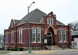 - π Red Rock Center for the Arts, 222 E Blue Earth Ave, β +1 507-235-9262, info@redrockcenter.org. It was built as the First Church of Christ Scientist which was founded in Fairmont on October 1, 1891. Finished in 1898, the building was designed by prominent Minnesota architect Harry W. Jones and is an excellent example of Richardson Romanesque style of architecture. The building was constructed of massive Sioux quartzite (red rock) blocks which were quarried in southwest Minnesota. The red stone was combined with contrasting buff colored limestone for a polychromatic effect. The three gables at the top of the building each showcase three small arched stained glass windows while the main level of the building features 19 restored stained glass windows. The cornerstone came from Concord, New Hampshire, and contains many artifacts of Christian Science teaching and the local church history. The Red Rock Center is listed on the National Register of Historic Places and has been recognized by the Minnesota Preservation Alliance for saving and restoring this historic architectural treasure.