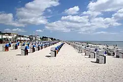 🌍 Beach. The 8km beach is the most the attractive feature of Grömitz. Most visitors rent a beach chair (Strandkorb), but there's also space to just put up a towel. For safety advice, see below. Free with tourist pass.