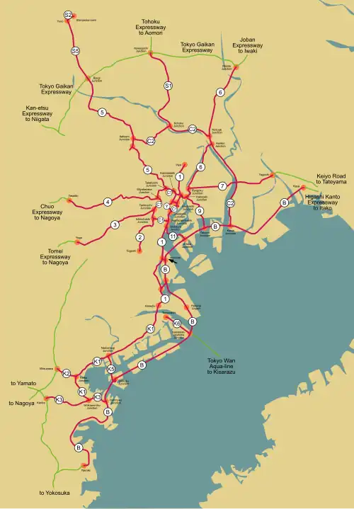 - Metropolitan Expressway (Shutoko), the network in and around Tokyo.