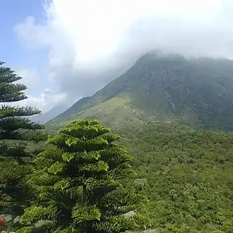 - Sunset Peak, 869 metres, 1½-2 hrs, about 7 km. This hike starts at the Nam San base station (approx. 300 m altitude), an outdoor area with picnic tables, a vending machine and flushing toilets. Follow the sign for the Nam San tree walk, a relatively flat trail through a forest with signs describing the trees seen along the route. About 5 minutes into this walk, you will come to a junction. Here you can either take the tree walk back to Nam San, or follow the trail marked "Sunset Peak". The trail first follows some switchbacks through the forest, then ascends above the treeline and runs along a ridge. On clear days, the summit offers spectacular views of the whole of Lantau Island and the southwestern new territories. There are cabins at the summit, which can be rented by following the URLs painted on the side.