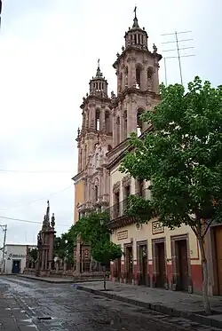 - The Palacio Municipal (Municipal Palace) or town government building is in a former two-story mansion which was built between 1730 and 1745. The building has a Baroque facade done in sandstone. It was remodeled in the last decades of the 20th century but its original facade was meticulously preserved. Inside, there is a central courtyard surrounded by arches with two stairwells to connect the floors. The main one is on the east side and the south one has a portrait of Francisco García Salinas.