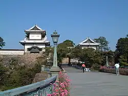 - 🌍 Kanazawa Castle (金沢城). At the center of Kanazawa is the former site of Kanazawa Castle. It has been vacated by the national university, which took over the site once used by the Ninth Division of the Imperial Army, the castle is public space now for the first time in its 400-plus years of history. The imposing Ishikawa Gate (石川門), so named as it faced the Ishikawa district, was once a side entrance to the castle grounds, but after several fires and man-made destruction, it is one of the few original buildings left on the site, the other being the Sanjikken Nagaya (三十間長屋) storehouse near the top. However the long Gojikken Nagaya (五十間長屋) that once guarded the castle palace has been rebuilt according to traditional methods, and is open to the public. ¥320.