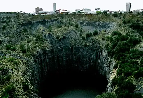 - ๐ Big Hole and Open Mine Museum, S Circular Rd, โ +27 53 839 4600. At the western side of the Big Hole is the Open Mine Museum. Consisting of original and carefully reconstructed buildings this museum has preserved a great deal of the city's past. The Eureka, the first recorded diamond discovered in South Africa, can be viewed at the museum. Have some fun sifting through diamond bearing gravel, looking for your own diamond. Experience a diamond mining operation, complete with blastings! Play skittles in the old bowling alley, or stroll through the old buildings which have been reconstructed here at the museum. The Occidental Bar & Restaurant is on site. Entrance 120 rand (2019).