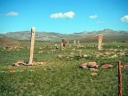- Bronze Age Complex Site with Deer Stones at Uushigiin Ovor (UO) (17 km west of Mörön). Deerstones are large 2- to 3-m-tall stones with deer and other images carved on the surface. They're from the Bronze Age (1500 BC). In 2023 this site, together with three others near Tsetserleg were listed as a