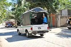 Colectivos ply the road between Pochutla and Zipolite. Two companies have different routes, one going through Puerto Ángel while the other passes through San Antonio and Mazunte. Both routes end a few hundred meters from each other along the main coastal road, at the western end of Zipolite. From Mazunte, the fare is M$15 to Zipolite and M$25 to Pochutla, passing San Antonio (M$20). Going past Zipolite - for example to Puerto Ángel - it is necessary to change in Zipolite. (March 2025)