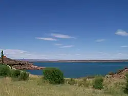 - Cinco Saltos (30,000 inhabitants) with Lago Pellegrini, about 25 km north or Neuquén. The lake lies about 15 km outside of the town and has good beaches, it is perhaps not as beautiful as El Chocón, but with good infrastructure at the shoreline (although there is no accommodation directly at the lake). Crowded at summer weekends. The city of Cinco Saltos has an acceptable infrastructure, but is not really worth visiting; from Cinco Saltos to the lake there is no public transportation (besides taxis).