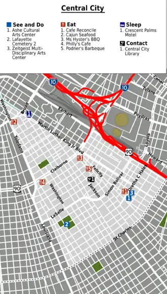 Central City is a section of New Orleans to the west (upriver) of the Central Business District and north (lakewards or away from the river as locals say) from the downriver section of Uptown. Some locals also call it "the 3rd Ward", although legally that designation includes a wider area including much of the Central Business District.