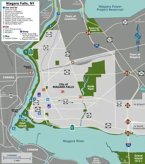| Routes through Niagara Falls |