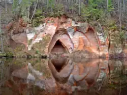 • Salaca River — With mostly fast stream, multiple sandstone cliffs and caves, suitable for several days long boat trips. A popular destination of local tourism is Mazsalaca. For water tourists Salaca River is always an adventure - peaceful and scenic sections interchanging with impressive canyons including the locally famous echo cliff Skaņaiskalns. Museum in Valtenberģu manor with expositions as Genealogy tree room, 31 Walter Hirt tree sculpture collection hunting trophies, play mouse collection. The longest natural caves of Latvia, the 300-m-long Dauģēni or X caves are located at Salaca.