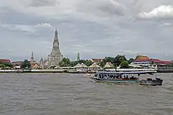When done, exit through the west gates (behind the Reclining Buddha) and look for signs pointing towards the pier of ๐ Tha Tien, which you will find half-hidden past a market alley full of stalls selling dried squid and such. You will see the white spires of ๐ Wat Arun (Temple of Dawn) across the Chao Phraya river. Hop aboard the angular little ferry and pay 5 baht (each way) for the trip. Seeing Wat Arun closer from the gardens around it is free, although quite frankly, it looks better from a distance. You will be charged 50 baht if you want to climb up (increasing to 100 baht on June 1, 2020). Note how the decorations of the spires are in fact all made from millions of bits of smashed white porcelain painted with patterns! Head back across the river on the ferry you came on and cross the pier to the Chao Phraya Express Boat dock, clearly identified with blue-and-white signs. As of April 2018, there are maintenance works for the express boat pier on the Wat Pho side as indicated on signs on the pier, so boats to both directions are leaving from the Wat Arun side, removing the need to cross the river again. Head to Pier 2 for southbound (downriver) boats, wave down the next downriver express boat and ride down all the way to ๐ Oriental Pier (N1) for 13 baht. From there, get to the Mandarin Oriental, often judged as the best hotel in the world. Just walk down the alley leading from the dock and turn left. Reward yourself with a drink at the famous ๐ Bamboo Bar, although (alas!) live jazz is played only in the evenings. It's expensive though: a beer will cost you a whopping 250 baht. You won't get in if you are wearing sandals either.