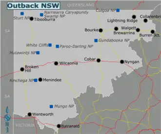 Outback New South Wales is the western part of New South Wales, part of the large Outback. The area is large and the population small: much of the area is desert, far from civilisation. The southern part of Outback New South Wales – the Willandra Lakes region – has been inscribed as a UNESCO World Heritage Site.