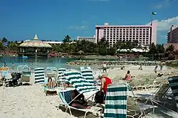 - Sunrise Beach Club and Villas, ☏ +1 242 363-2234. These privately-owned villas are less than three blocks from the Atlantis Casino, and usually much cheaper. Units vary in size, but each has its own kitchen. Indeed, the biggest difference in staying here is that there is no room service; you'll have to run to the market for food. Viola's Jungle Bar is on site, however, and serves meals and drinks.