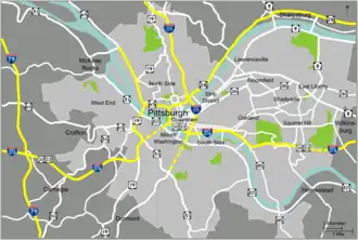 | Routes through Pittsburgh |