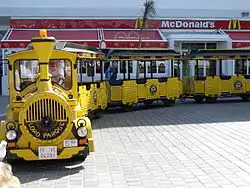 By trackless train