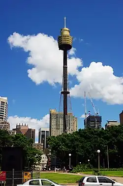 - π Sydney Tower (Entry from Westfield Shopping Centre (level 5 east side) on Pitt St Mall and Market). Towering above the city of Sydney since 1981, when it became the tallest structure in the city, the Sydney Tower reaches a total height of 305 m β great views are available from the 250-m-high viewing level. The tower is Australia's tallest free-standing structure and the second highest observation tower in the Southern Hemisphere after the Sky Tower in Auckland). The trip up to the observation deck includes a short "4D" movie (3D with effects such as smoke and water) before travelling up in the lift. If looking at the city through windows isn't enough, take the Skywalk tour on the top of the tower. Observation deck: $26, Skywalk: $69.