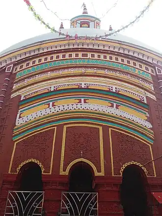 The old temple of Goddess Tara is somewhat damaged. The present temple with eight roofs was built in 1225 by one Jagannath Ray of Mallarpur village. On the main gate of the temple, the statue of Goddess Durga and her full family are carved. On the left, the war of Kurukshetra (Mahabharata) and on the right stories from Ramayana are depicted.