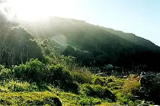 Across the Bass lake you can the fynbos stop abruptly at the edge of the forest.