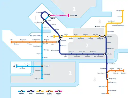 TransLink breaks Metro Vancouver into three fare zones; your fare depends on the number of zones you travel in. The standard adult fare is $3.20 for all bus trips across Metro Vancouver and SkyTrain travel within the City of Vancouver (Zone 1). It also covers all travel system-wide at off-peak times: weekends, holidays, and weekday evenings after 6:30PM. Travel out of Vancouver on the SkyTrain or SeaBus crosses fare zone boundaries and costs $4.65 to $6.35 on weekdays before 6:30PM.