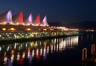 πCanada Place,999 Canada Pl(northwest of Waterfront station).Built for Expo 86 as Canada's exhibit, today the building serves as a cruise ship terminal and the eastern building of Vancouver Convention Centre. It is also the site of an IMAX theatre and the luxurious Pan Pacific Hotel. Walk around the unique sailed structure and take in views of the building itself, Coal Harbour, and the North Shore. It uses white colour with a roof of funky "sails" or "waves", which is a curved triangular shape, that has made it a modern gem.(updated Mar 2022)
