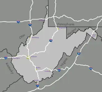 - West Virginia is served by one major airport: