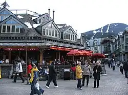 The town of Whistler sprawls out around the valley, but the heart of the Whistler experience focuses on the European-style villages built around the base of the gondolas. Most of the accommodation, restaurants, bars, shops and the Blackcomb and Whistler gondolas are in Whistler Village and the Upper Village, at the foot of Whistler and Blackcomb. Village North (Blackcomb Village), built around the old base of Blackcomb, is smaller but still has a number of restaurants and hotels. Whistler Creekside is built around the original gondola on the south side of Whistler Mountain.